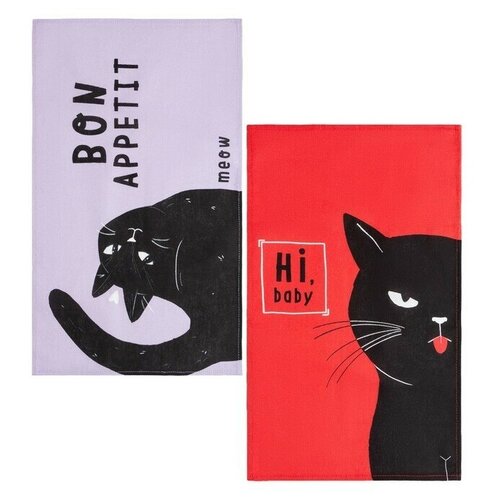 Набор кухонных полотенец Доляна "Hi, Babe", 35х60см-2шт, 100% хлопок