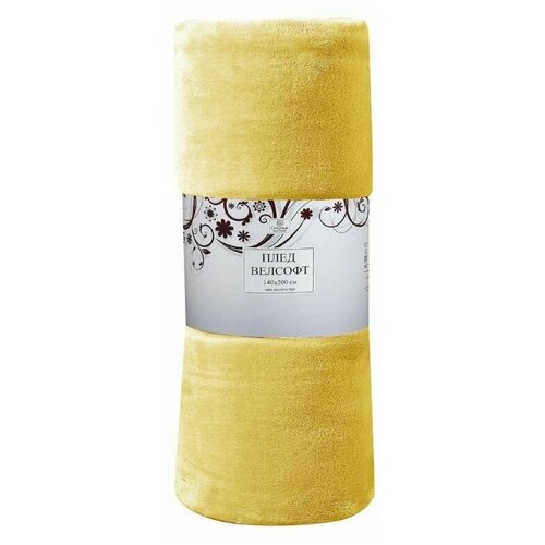 Плед велсофт 140х200 см. Мягкий пушистый большой желтный горчичный