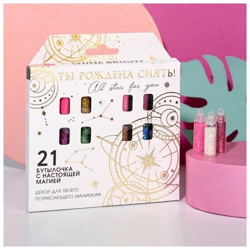 Ассорти для декора ногтей «Ты рождена сиять», 21 бутылочка