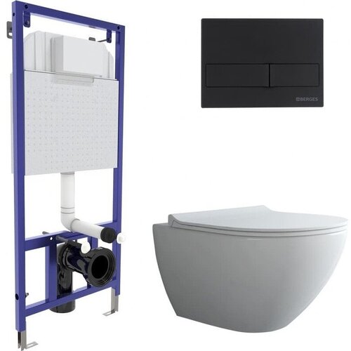 Berges Wasserhaus Комплект BERGES для монтажа подвесного унитаза GAMMA: инсталляция NOVUM525, кнопка S3, унитаз с сиденьем микролифт, быстросъем