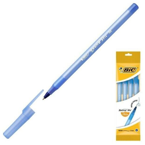 Ручка шариковая, синяя, набор 4 штуки, BIC Round Stic Classic, 1 набор