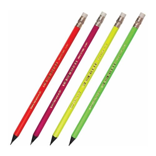 Карандаш чернографитный BIC, 1 шт., "Evolution Fluo", HB, с резинкой, пластиковый, корпус ассорти, заточенный, 942882, 181281