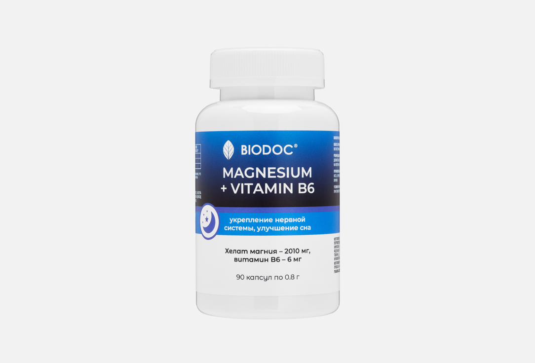 БАД для поддержки нервной системы BIODOC Магний и витамин B6 в капсулах 90 шт