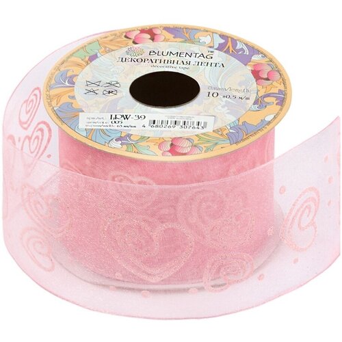 Лента декоративная Blumentag 63 мм, 2-1/2, 10 м, 005 розовый (LRW-39)