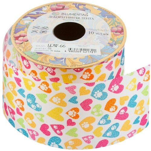 Лента декоративная Blumentag 70 мм, 2-3/4, 10 м, 01 белый, сердечки (LRW-66)