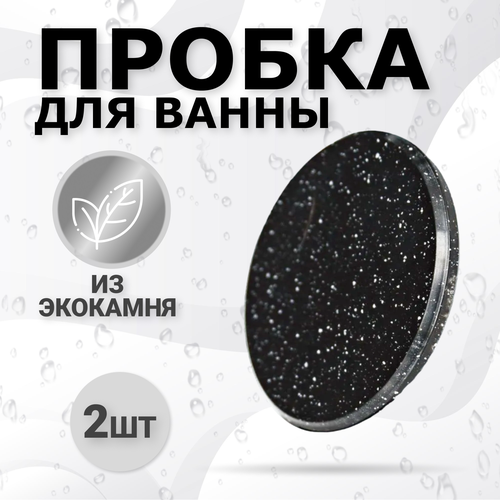 Пробка/заглушка для ванны из Экокамня, черный цвет, глаянцевая поверхность, 2шт