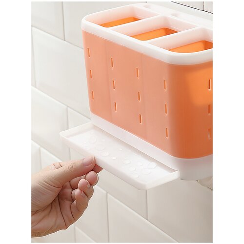 BOFOS/ Стакан для зубных щеток с поддоном. Настенный органайзер для ванной и кухни (Розовый)
