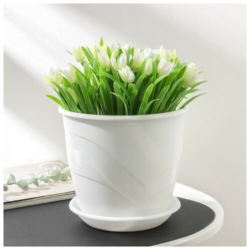 Горшок для цветов с поддоном «Венеция», 3,1 л, d=19 см, цвет белый