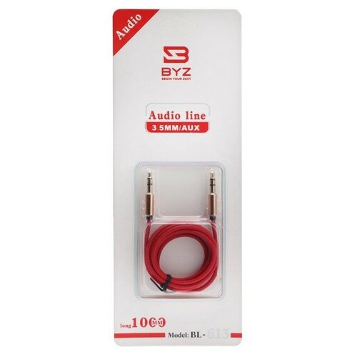 BYZ Кабель аудио AUX BYZ BL-613, Jack 3.5 мм(m)-Jack 3.5 мм(m), 1м, красный