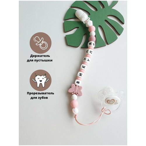 Именной держатель для пустышки соски грызунок Вика,Виктория, Викуля