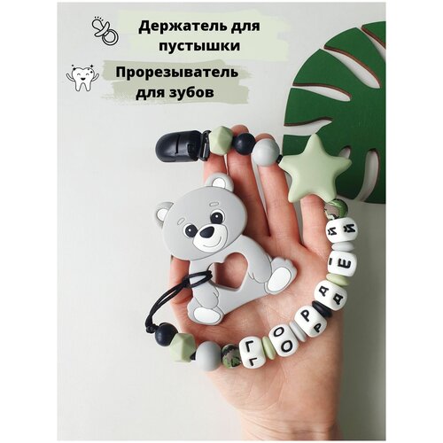 Именной держатель для соски, пустышки,грызунок Гордей