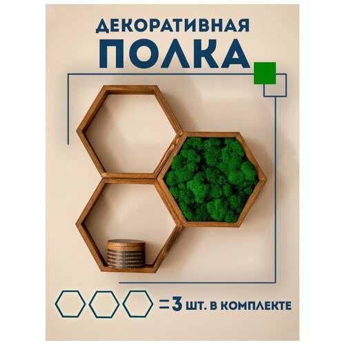 Полки соты со мхом, полка настенная, панно настенное, декор для дома, декор для интерьера