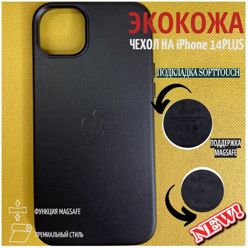 Чехол для iPhone 14 PLUS с функцией Magsafe / Чехол из эко-кожи на айфон 14 плюс с магсейф /Премиум чехол под оригинал с логотипом