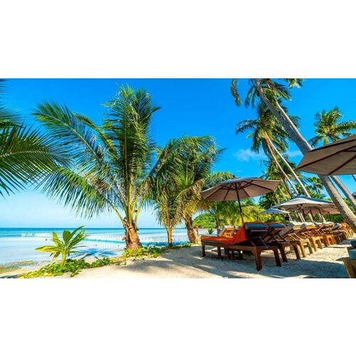 Постер на экокоже 40x40 LinxOne "Песок море beautiful palms" интерьер для дома / декор на стену / дизайн