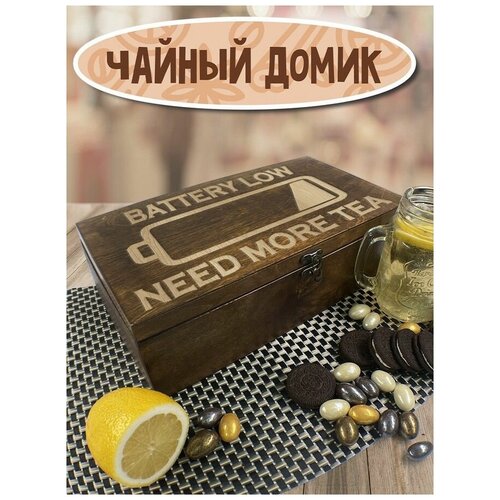 Коробка, чайница для чайных пакетиков на 4 отделений с гравировкой чайник, время чая, tea time - 130