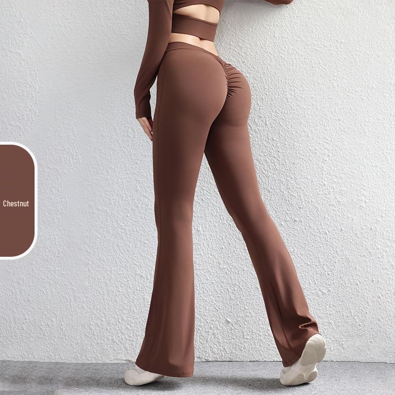 Персиковые брюки клеш для йоги с эффектом пуш-ап - Быстросохнущая одежда для фитнеса с широкими штанинами для женщин Large