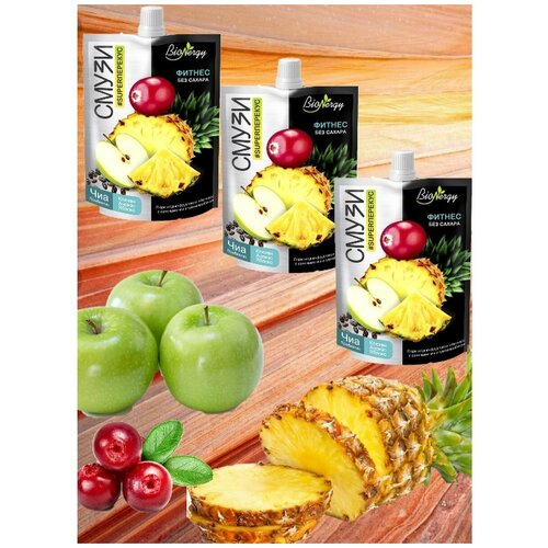 Пюре ягодно-фруктовое BioNergy Смузи Фитнес с семенами чиа и гуммиарабиком без сахара, 120 г