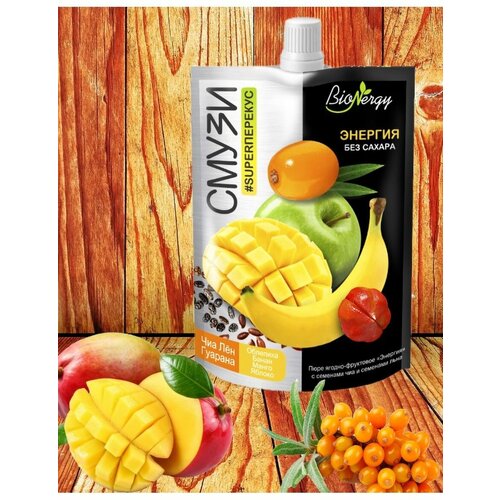 Пюре ягодно-фруктовое BioNergy Смузи Энергия с семенами чиа, льна и гуараной, 120 г