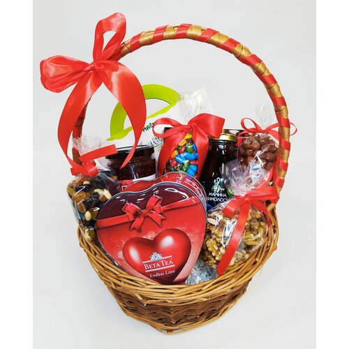 Подарочная корзина с вареньем, медом и кедровым молочком