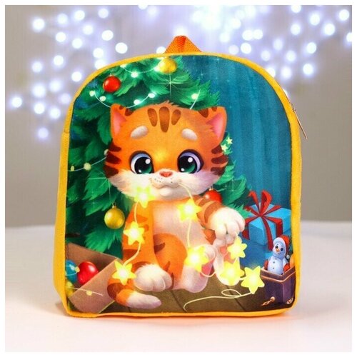 Рюкзак детский плюшевый "Котик у елки", 26*24 см 7790614 .
