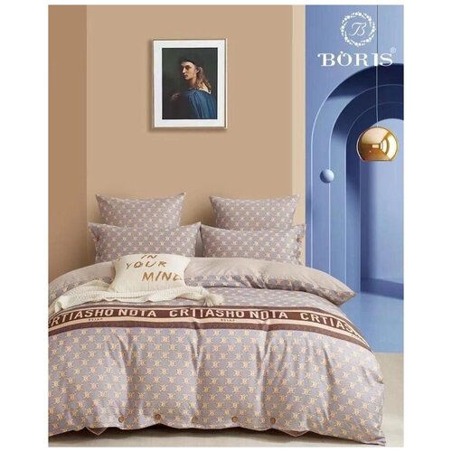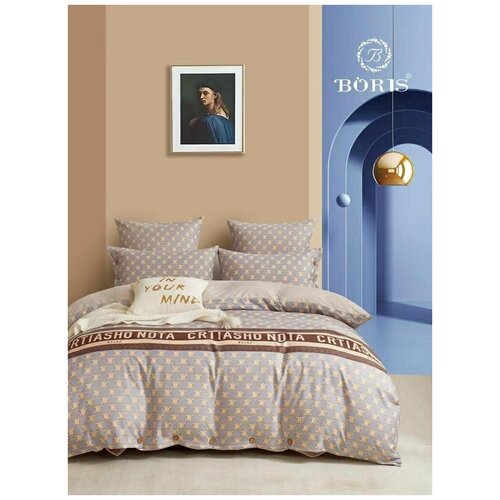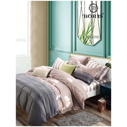 Комплект постельного белья "Boris" Евро-сатин, 4 наволочки 50х70-70х70, пододеяльник 200х220, на молнии, простыня 180х200(+25), на резинке по кругу