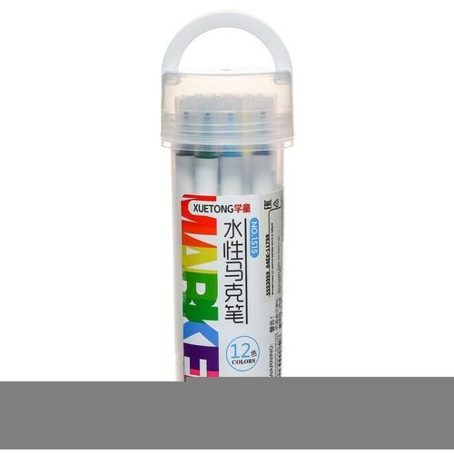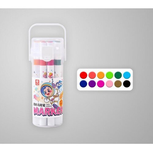 Набор маркеров, 12 цветов, двусторонние, пулевидный и скошенный наконечники