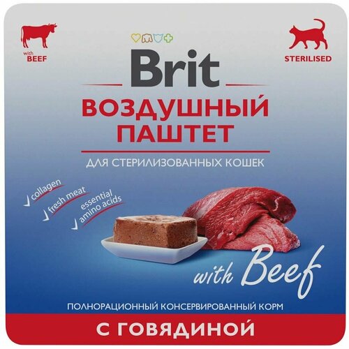 Воздушный паштет с говядиной 80% мяса Брит Premium (7шт х 100гр) для стерилизованных кошек