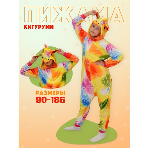 Кигуруми Единорог на молнии, размер 100, оранжевый, желтый
