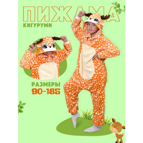 Кигуруми Единорог на молнии, размер 140, оранжевый, бежевый