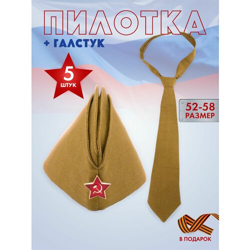 Пилотка военная детская и георгиевская лента в подарок размер 58 - 10 шт.