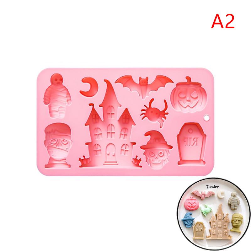 Хэллоуин Силиконовая форма Призраки Тыквы Летучие мыши Дома с привидениями Дизайн надгробных плит Форма для выпечки Шоколадные торты Мыло Форма для печенья A2