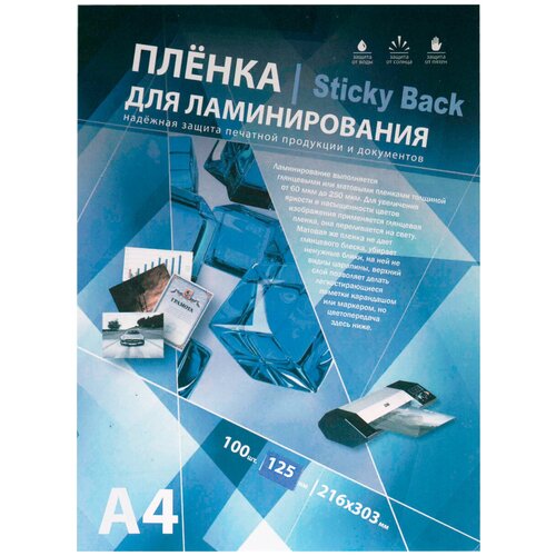 Плёнка для ламинирования Bulros самоклеящаяся A4 (216х303 мм), 125 мкм, глянцевая, 100 шт.