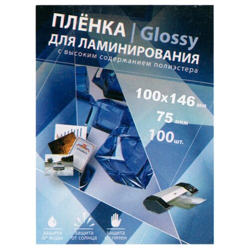 Плёнка для ламинирования Bulros 100х146 мм, 75 мкм, глянцевая, 100 шт.