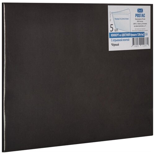 Конверт С4 из цв. бум, 120г/м2, с отрыв. лентой, черный, 5шт. уп