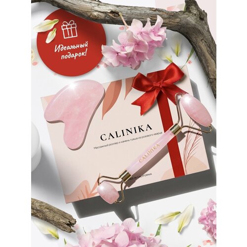 Calinika / Подарочный набор для женщин Роллер и Скребок Гуаша из розового кварца для массажа лица и тела