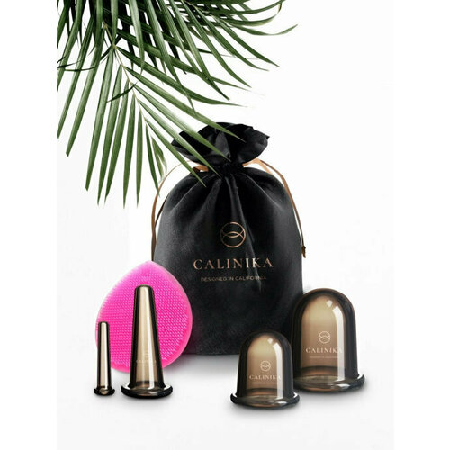 Calinika / Подарочный набор для женщин Силиконовые вакуумные банки для антицеллюлитного массажа тела и от морщин лица с розовой щеточкой