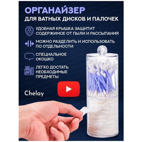Органайзер для хранения ватных дисков, палочек, тампонов и спонжей с крышкой