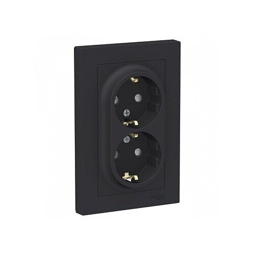 Розетка двухместная ATLASDESIGN, скрытый монтаж, с заземлением, со шторками, карбон. ATN001026 Schneider Electric (10шт.)