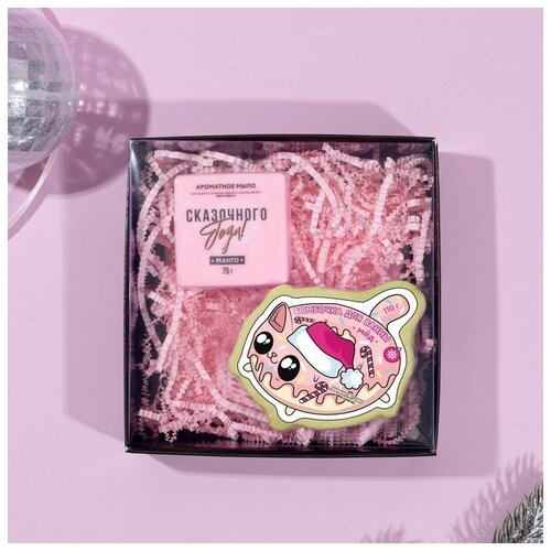 Набор "Яркого года!": бомбочка для ванны в форме кото-пончика 110 г аромат медовый мыло ручной работы 75 г аромат манго