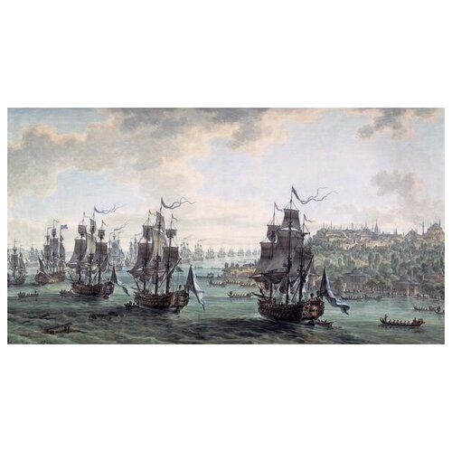 Репродукция на холсте Российская эскадра под командованием Ф.Ф. Ушакова, идущая Константинопольским проливом (The Russian squadron under the command of the FF Ushakov, going strait of Constantinople) Иванов Михаил 74см. x 40см.