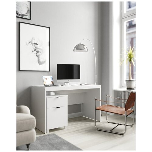 Стол письменный с полками лофт / Письменный стол школьный белый /Купить стол для работы / Без ящика INTERIUM Novus White White, 123,2х65х75 см