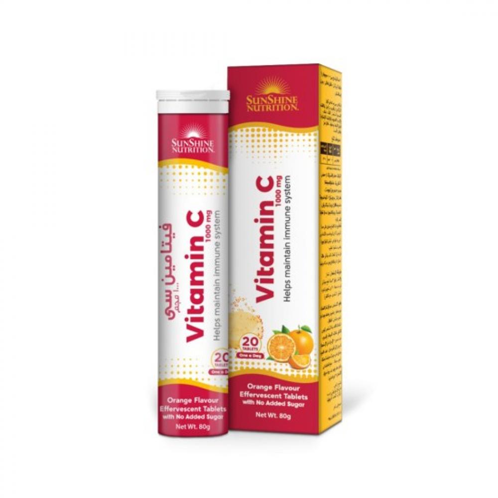 Sunshine Nutrition Vitamin C 1000mg Orange Flavor Effervescent 20 Tablets
