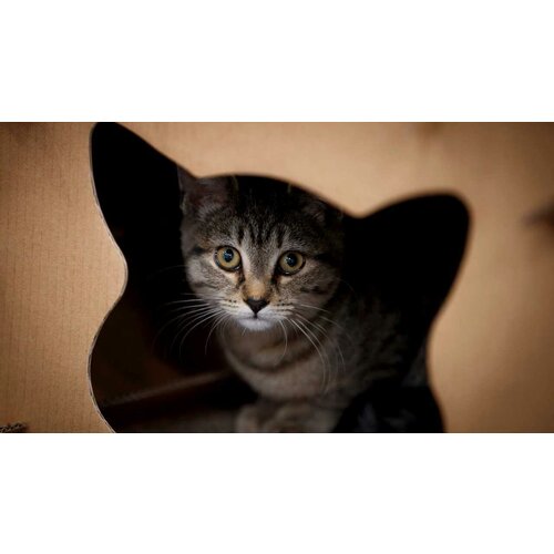 Картина на холсте 50x70 LinxOne "Cat Boston Purr Cat Cafe" интерьер для дома / декор на стену / дизайн
