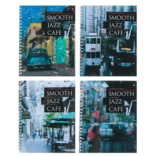 Тетрадь 96 листов в клетку на гребне JAZZ CAFE, обложка мелованный картон, глянцевая ламинация, микс