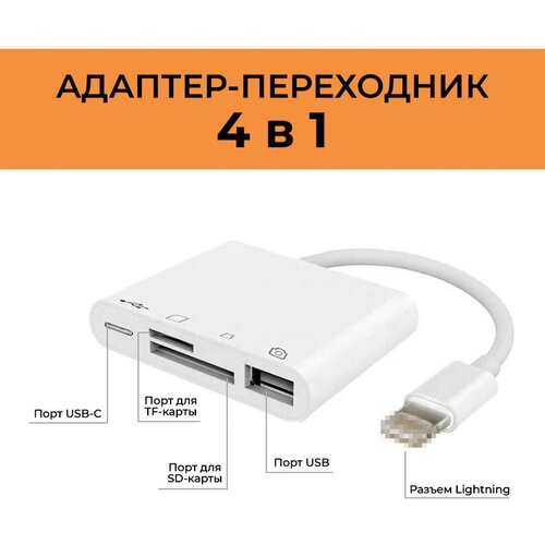 Хаб / Адаптер / Переходник 4 в 1, разъемы: Lightning, USB-A USB 3.0 OTG, USB-C, SD / TF Card Reader