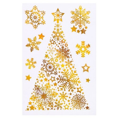 Набор наклеек "Новогодняя ёлочка" золотая голографическая фольга, снежинки, 16,7 х 24,6 см