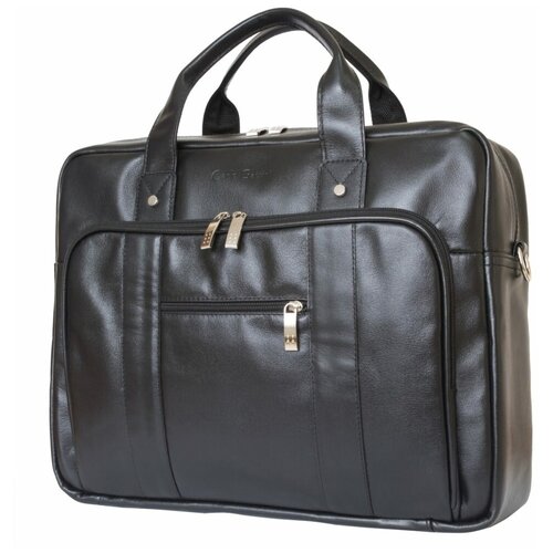 Портфель Carlo Gattini, натуральная кожа, гладкая фактура, на защелке, с плечевым ремнем, для мужчин, черный