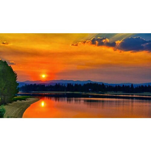 Постер на экокоже 60x110 LinxOne "Lake Cascade озеро закат" интерьер для дома / декор на стену / дизайн