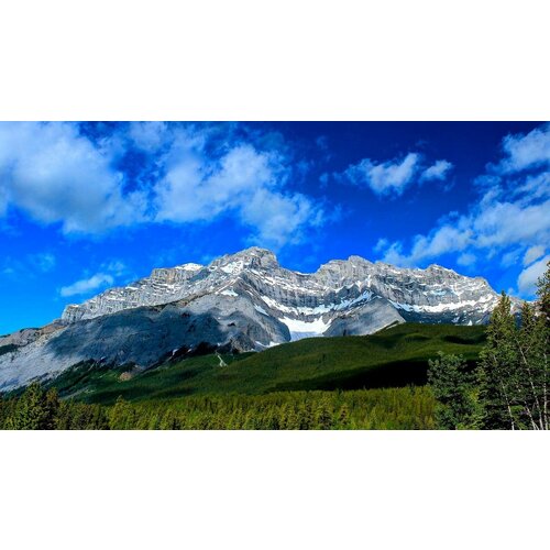 Картина на холсте 60x110 LinxOne "Гора mountain лес Cascade" интерьер для дома / декор на стену / дизайн