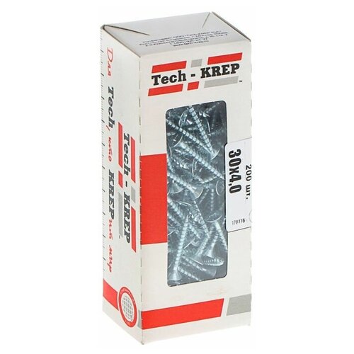 Саморезы универсальные 30х4,0 мм (200 шт) оцинкованные - коробка с ок. Tech-Krep